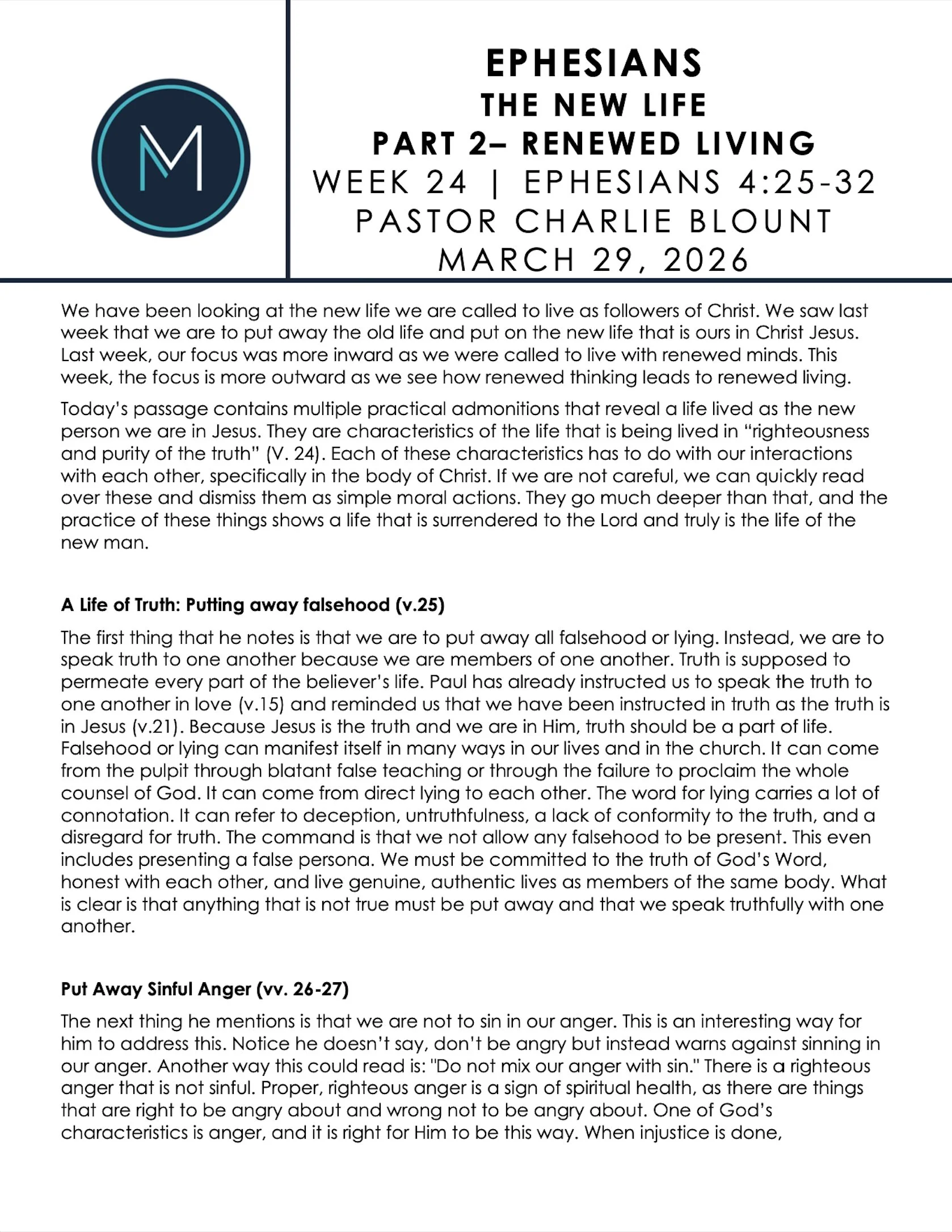 Want to engage with one of our sermons at First Moore? Find sermon notes, audio, and video here.